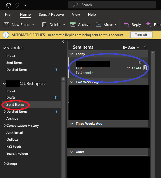 Disclaimer: This Tutorial will only work for emails sent to other @ubishops.ca email, the recall function will not work with emails sent to gmail accounts, other outlook accounts, etc.